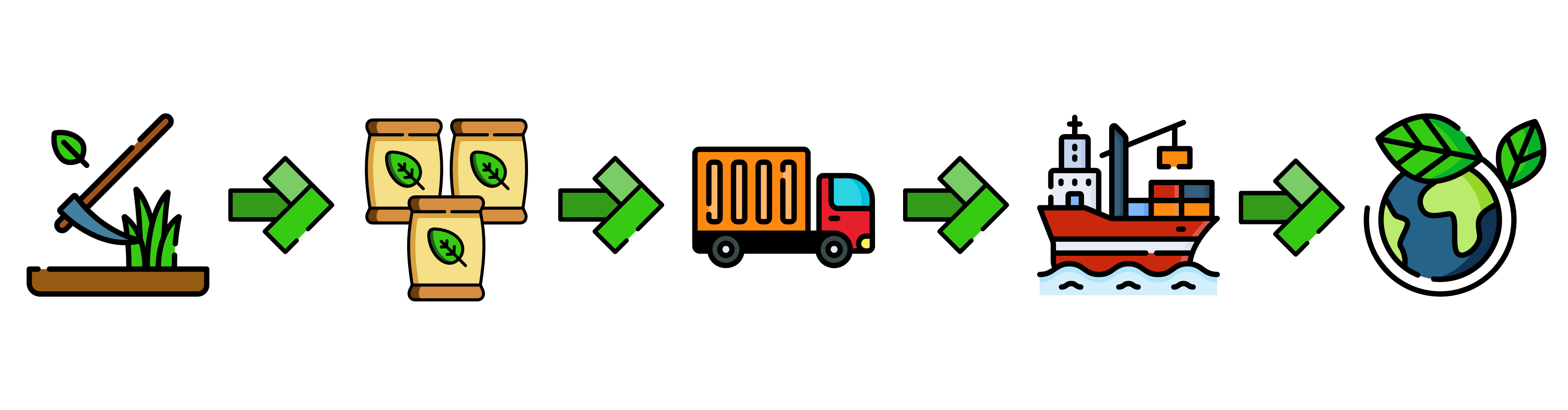 From the Farmers to the Port. Acquiring raw material directly from the farmers in growing areas and packing the spices in our certified facilities we ensure: traceability, quality, logistics with Good Manufacturing Practices and ISO 22000 standards.